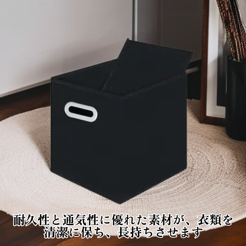 ● シンプルな正方形デザインで、どんなインテリアにも馴染みやすく、家庭用収納ボックスとして幅広く活躍します。
