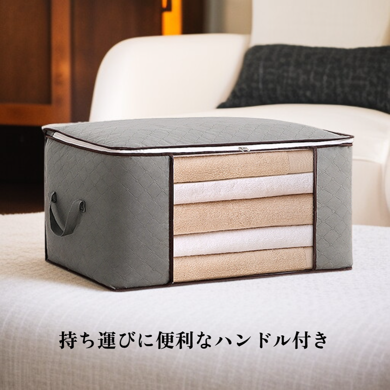 ● 持ち手付きで持ち運びやすく、クローゼットや押入れの整理整頓にも最適な収納バッグです。